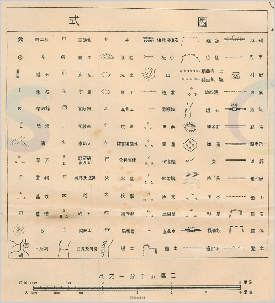 地图信息较为丰富,通过清晰描绘密布的街道、重要建筑(如省府机关、车站、贡院墙根街、芙蓉街等)、铁路、河流水系(如大明湖、小清河)以及周边村落(如大赵家庄、洛口镇等),精确勾勒出当时济南的城市格局。图中还包含详实的图例,解析了包括工兵厂、电信局、各类桥梁、庙宇、学校、监所、城墙等多达数十种地物的标识符号。