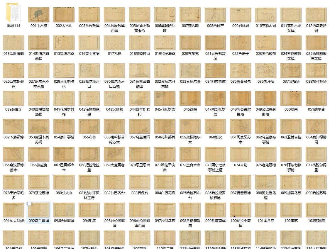 图册覆盖了内外蒙古交界区域的详细地理信息。细致标注了山川、卡伦、庙宇及聚居点,具有重要的历史与地理参考价值。所有地图均为高清扫描,适合研究者、历史爱好者及地图收藏者下载使用。