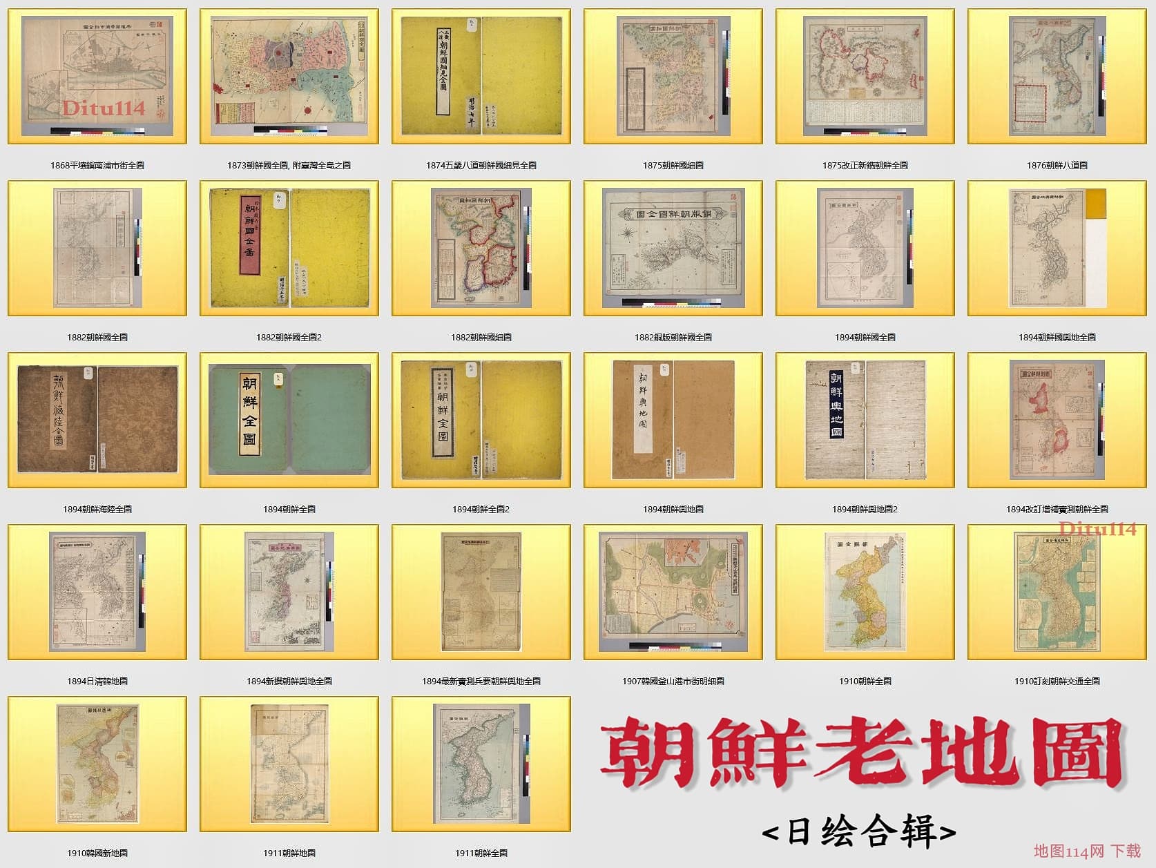 本专辑为加州大学伯克利分校所藏的27组晚清时期由日本绘制的朝鲜地图合集,文件夹共计包含40余张高清图片,各组图均附本图简要说明文本,总下载大小为278MB。其绘制时间跨度从1868年至1911年,涵盖多种朝鲜全图、区域详图及专题地图。