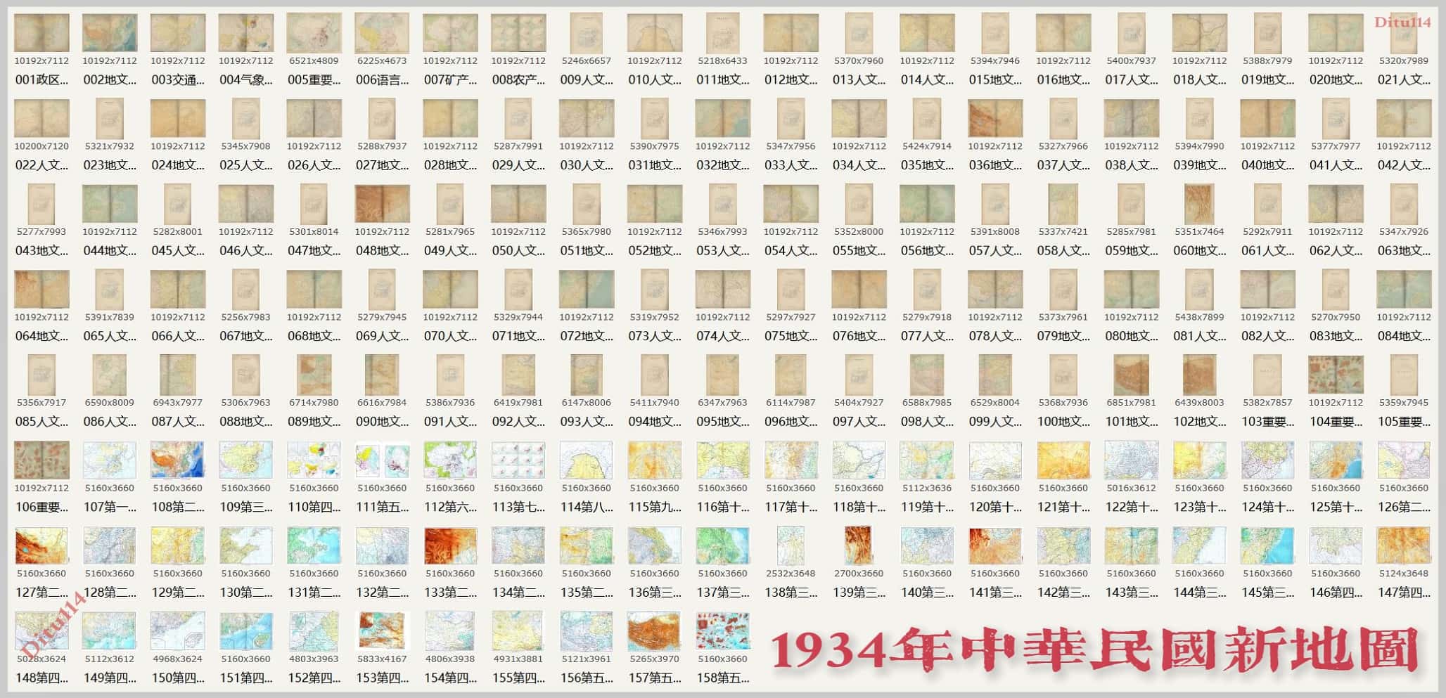本资源提供1934年出版的《中华民国新地图》地图部分高清扫描版,共包含159张图片,总下载大小为2GB。图集出版于民国二十三年,其地图涵盖政区总图、交通气象重要城市及农户分布图、语言分区图、矿产分布图、农产分布图等多种类型,并附有详细的地文详图索引和人文详图索引。地图比例尺多样,扫描文件分辨率高,适合历史地理研究及收藏。