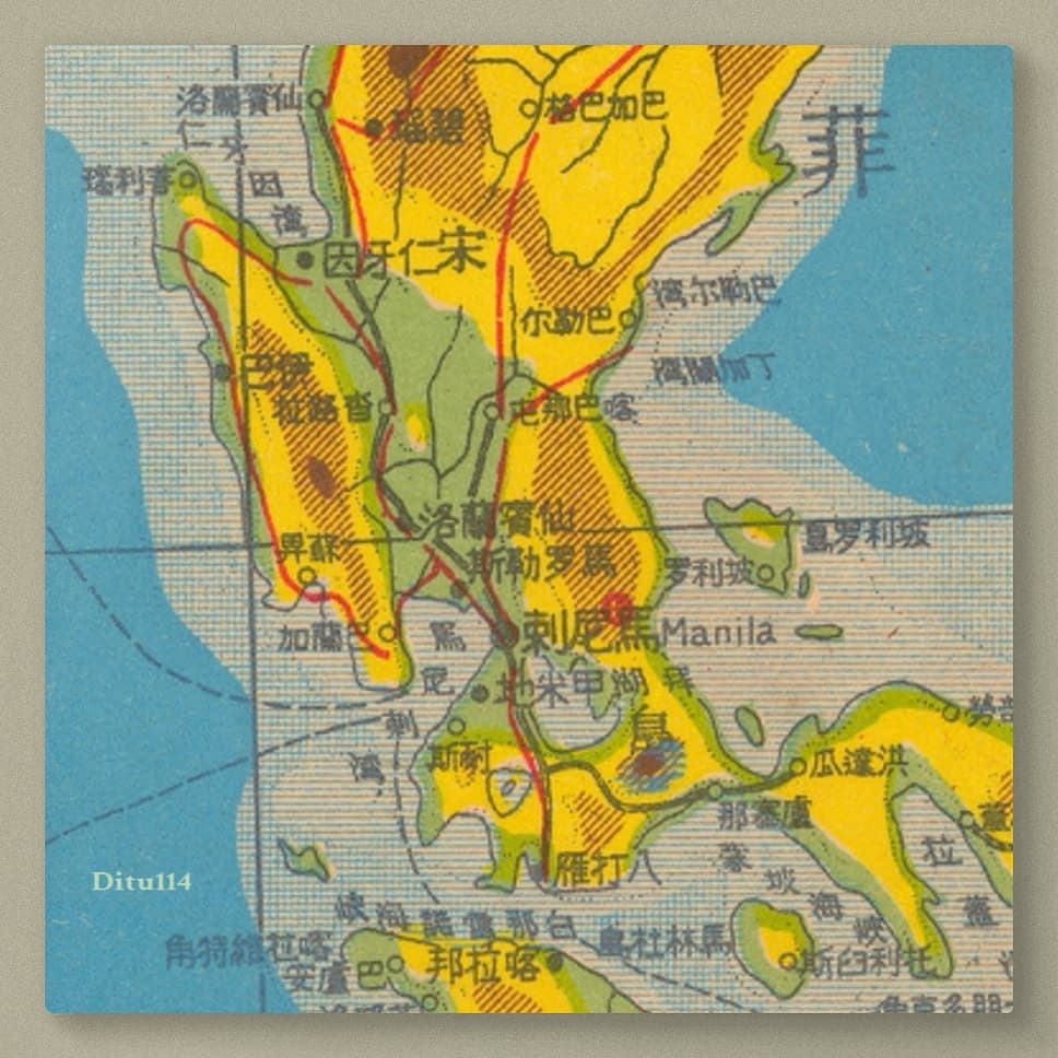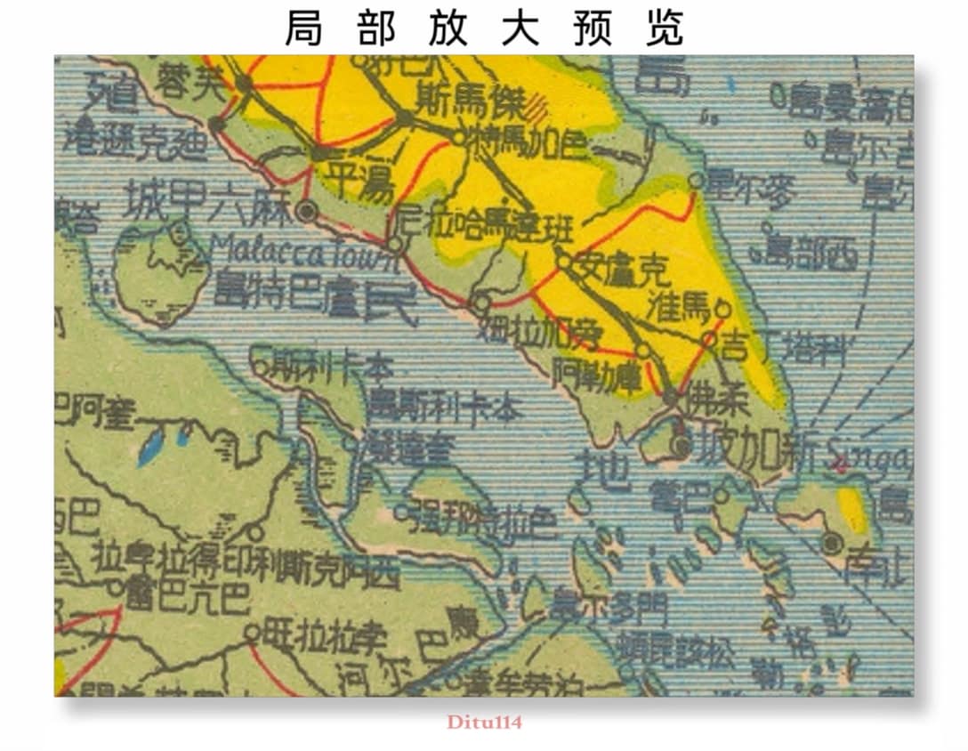 图中以不同色彩清晰区分陆地地形与海洋区域,标注了主要城市、岛屿及地理特征,辅以经纬网及比例尺说明。整体设计层次分明,兼具宏观区域展示与局部细节呈现,为研究二战结束后南洋地区历史地理提供了参考资料。