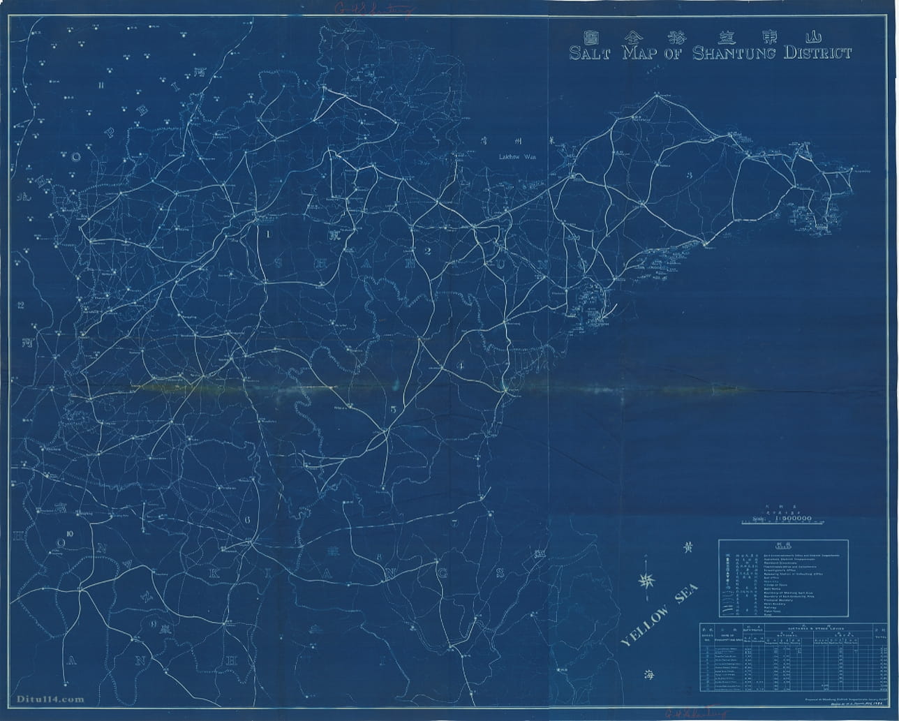 本资源提供民国时期编制的《山东盐务全图》高清电子版,原图由山东盐务稽核所于1934年1月编绘。地图采用中英文双语标注,中英文标题分别为《山東鹽務全圖》《SALT MAP OF SHANTUNG DISTRICT》。全图比例尺为50万分之一(1:500,000),扫描原件尺寸153×123厘米。电子版分辨率18039×14471像素,文件大小60.6MB,具有较高的清晰度,适合细节研究和下载。