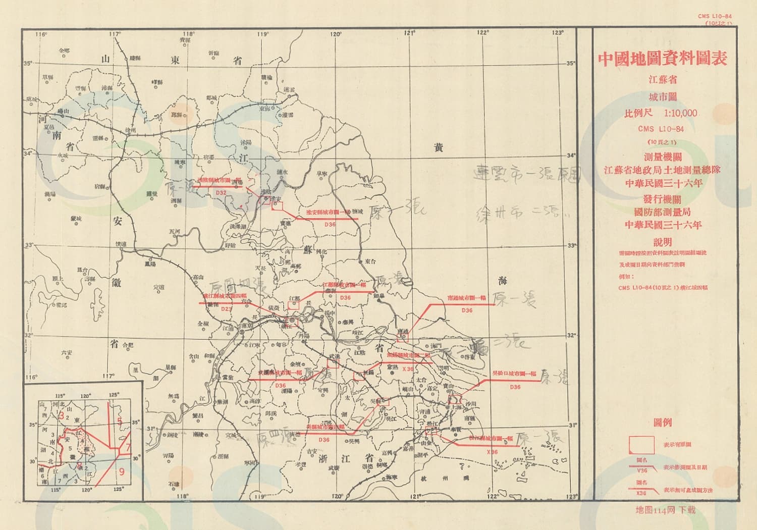 此江苏省城市图于民国三十六年由江苏省地政局土地测量总队测图,国F部测量局发行,地图比例为一万分一,共有地图25张,附图表一幅,总下载大小约为270MB。